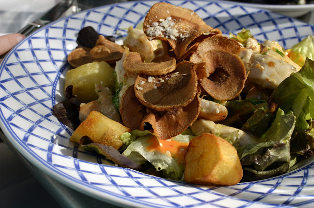 Greeshma had a hankering for fish cakes, though she had no idea what they were, and ordered a small plate, which included one fish cake and a small salad. I think Greeshma was a little bummed, since she doesn't like fishy fish, and the fish cake was, well, fishy. They cook a mean version of rustic potatoes here though - golden and perfectly crispy, so she feasted on those.